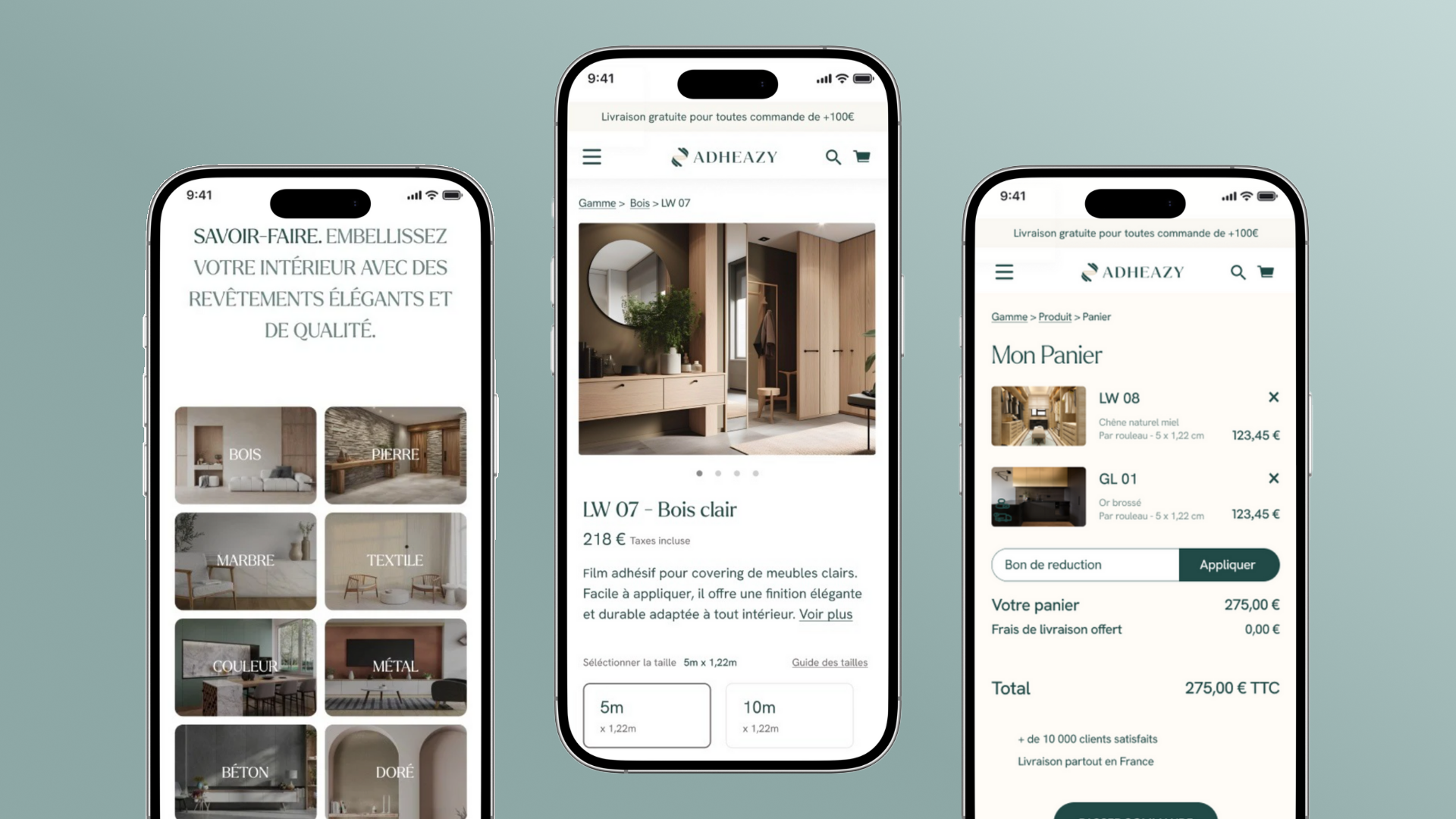 The challenge was to design a sleek, modern, and intuitive e-commerce site that offers a clean and airy user experience. I focused on creating a design that would highlight the different products clearly and attractively, while ensuring smooth navigation and easy purchasing. The aim was to make the discovery of products simple and engaging, while reflecting the premium quality of the Adheazy brand.