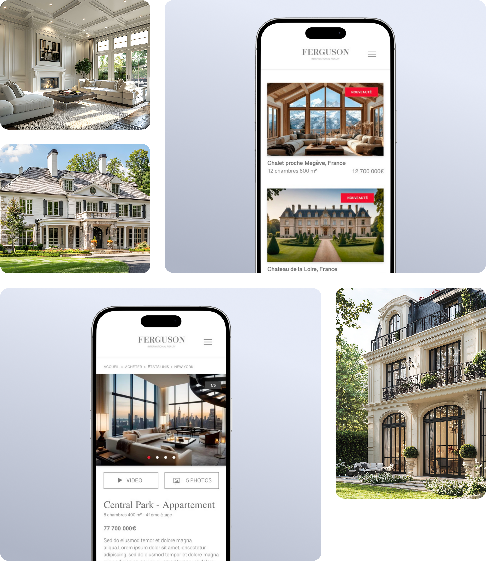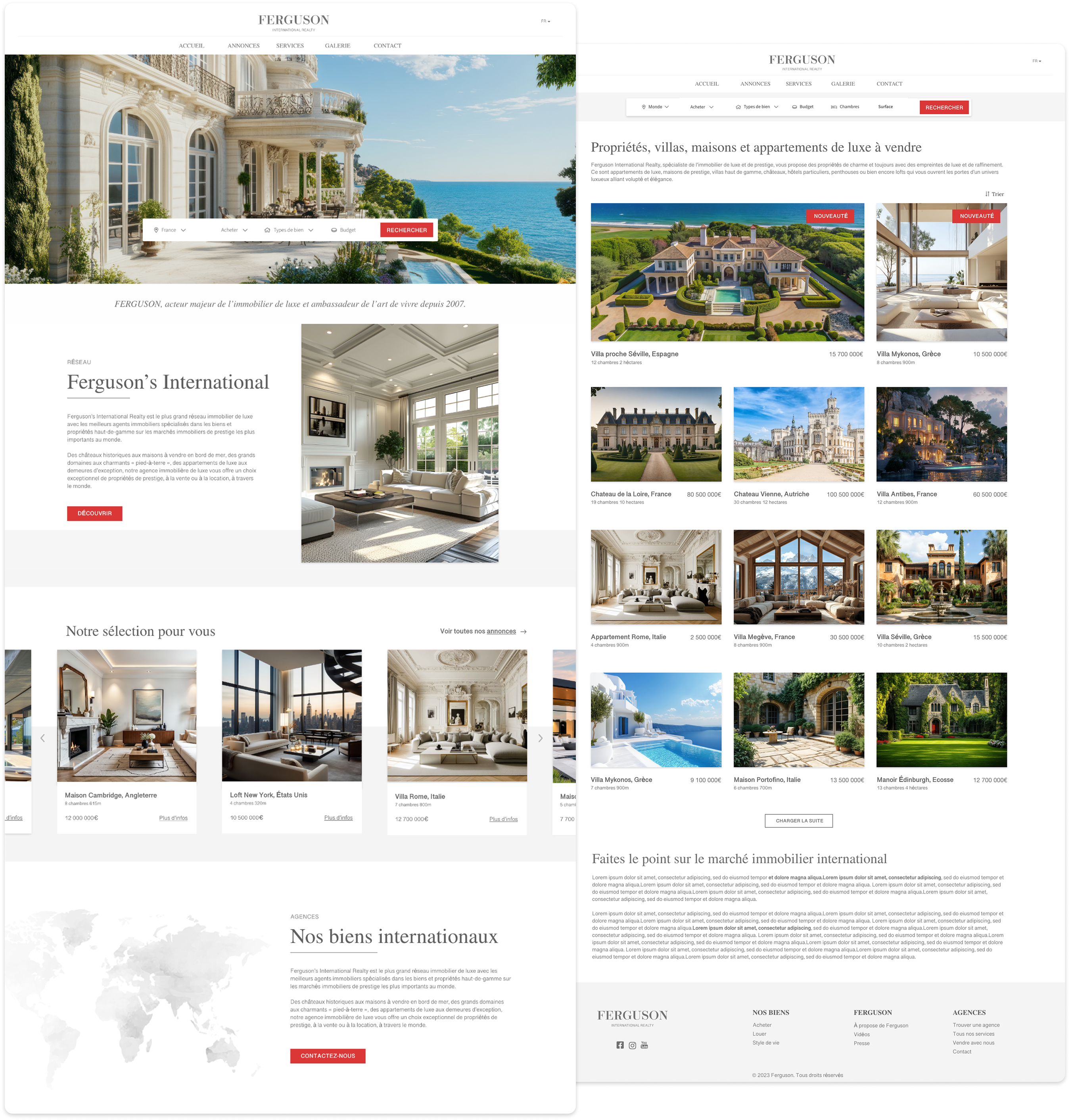 Ferguson International Realty is a luxury real estate website specializing in the sale of exceptional properties worldwide. With many years of experience and a vast, global network, the agency offers an exclusive selection of high-end properties. This project was created during my personal time, with the goal of designing a platform that reflects the luxury codes and showcases these prestigious properties.