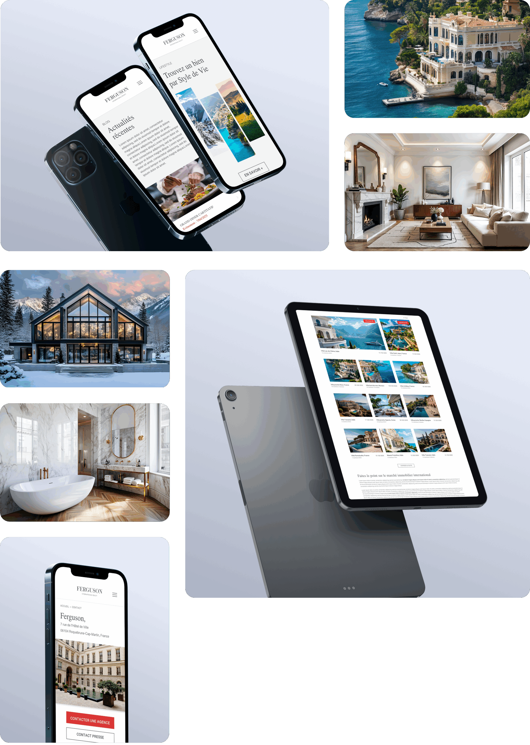 I created the mockups, wireframes, and prototypes for the website, ensuring the graphic atmosphere was clean, sober, and elegant, fully aligned with the expectations and standards of the luxury market. The website needed to provide a seamless and immersive experience, allowing users to easily discover properties and explore detailed information about each listing. The aim was to deliver a modern and refined design while ensuring intuitive navigation and a site that matched the excellence of Ferguson International Realty.